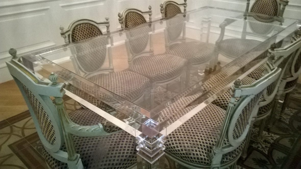 Tavolino da salotto su misura con piano di cristallo da 8 mm